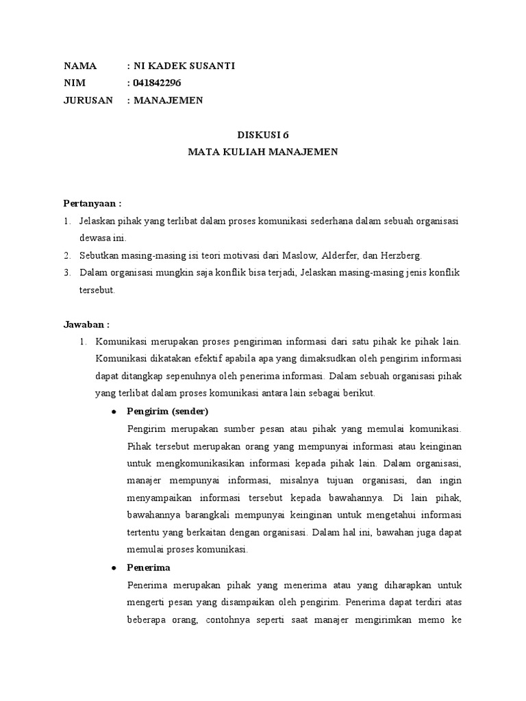 Nama: Ni Kadek Susanti NIM: 041842296 Jurusan: Manajemen