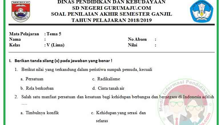 Soal UAS / PAS Kelas 5 Tema 5 Kurikulum 2013 Revisi 2018 - GURU MAJU