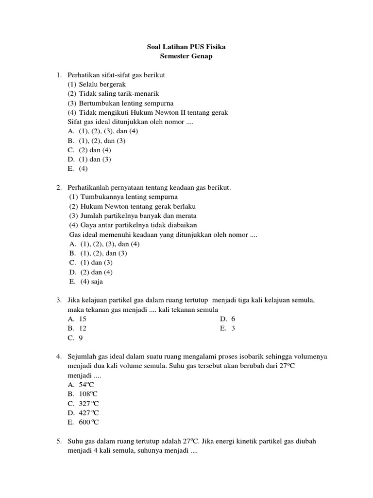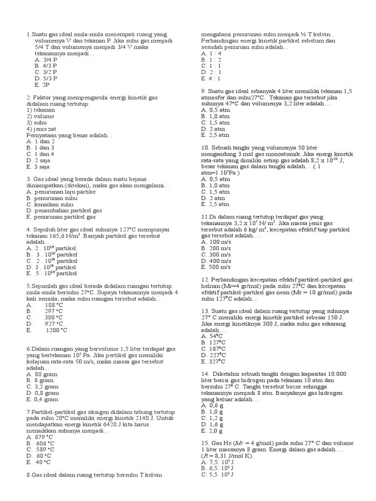 Contoh Soal Teori Kinetik Gas Dan Termodinamika