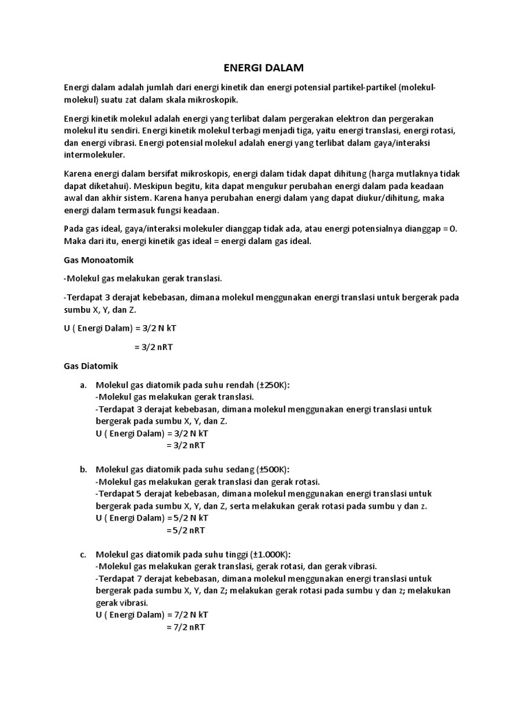 Dalam Suatu Gas Ideal Energi Dalam Adalah