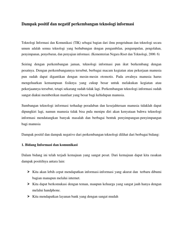 dampak positif dan negatif perkembangan teknologi bagi kehidupan manu…
