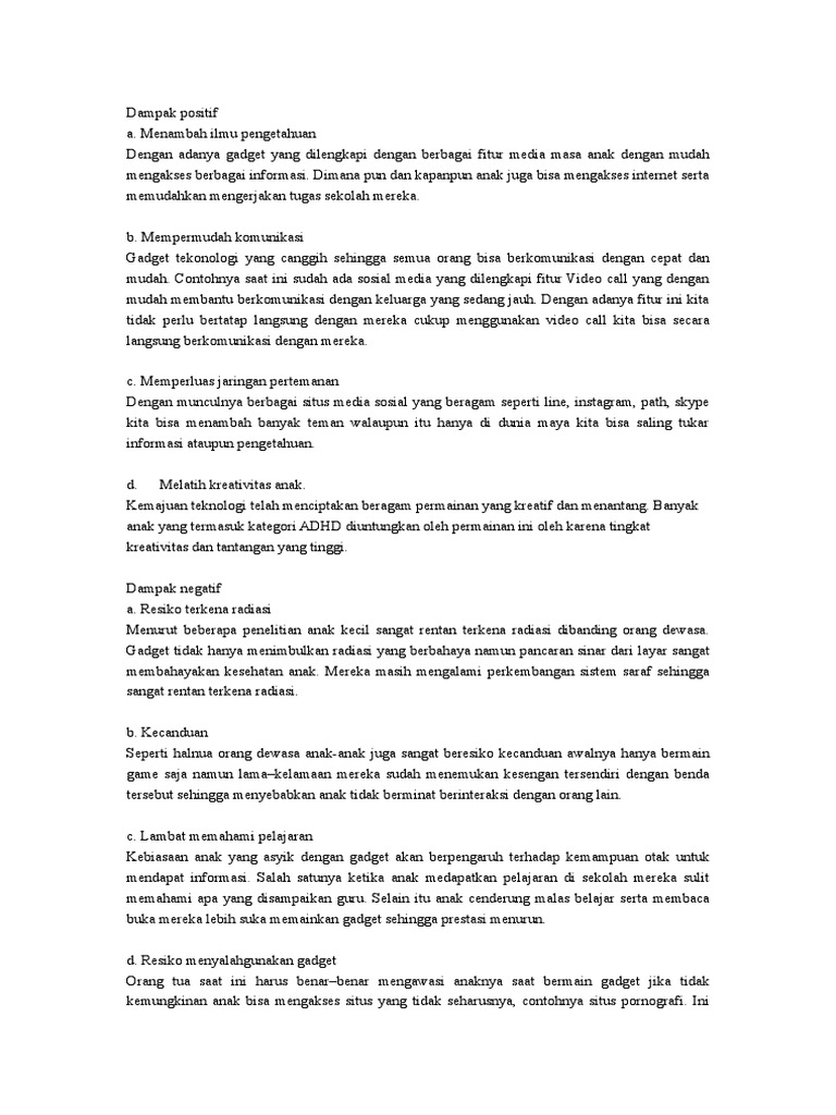 Pembahasan Dampak Positif Dan Negatif Penggunaan Gadget Pada Anak