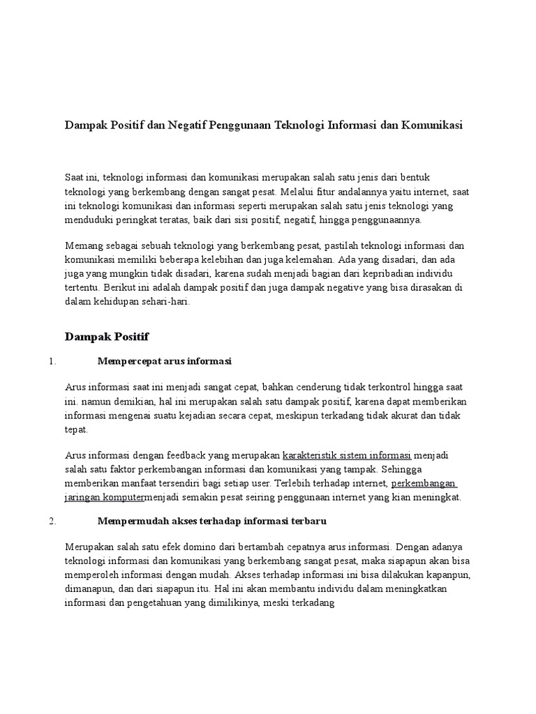 Dampak Positif Dan Negatif Penggunaan Teknologi Informasi Dan Komunikasi