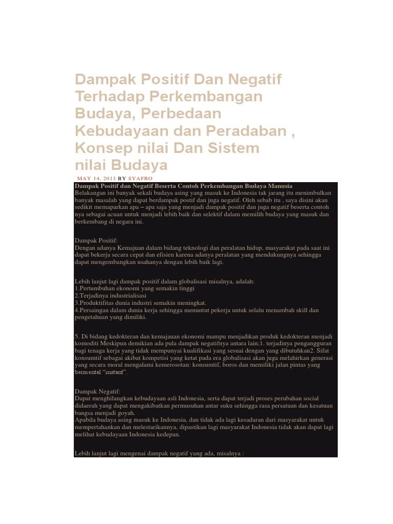 Dampak Positif Dan Negatif Terhadap Perkembangan Budaya, Perbedaan Kebudayaan dan Peradaban , Konsep nilai Dan Sistem nilai Budaya