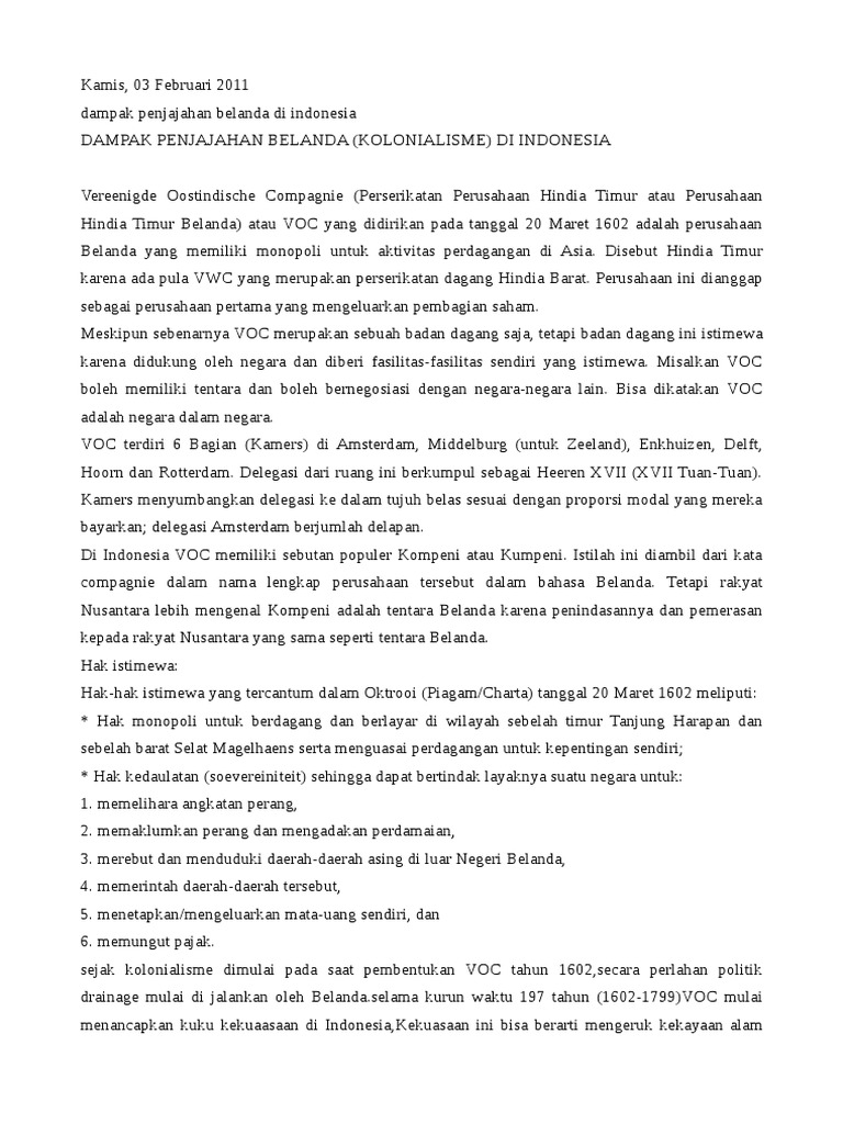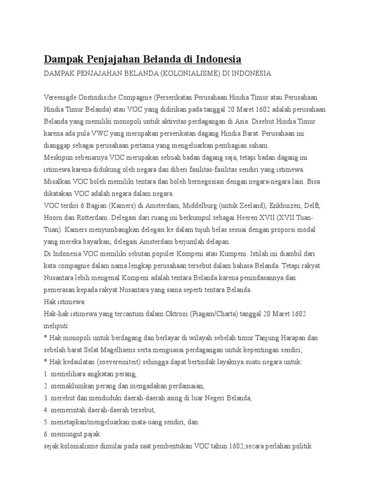 Dampak Penjajahan Bagi Indonesia.docx - Dampak Penjajahan Bagi …