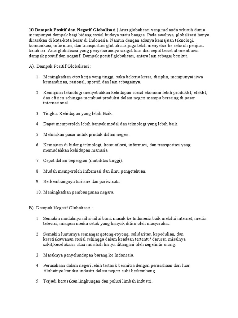 Sebutkan Dampak Positif Dan Dampak Negatif Globalisasi - Sebutkan …