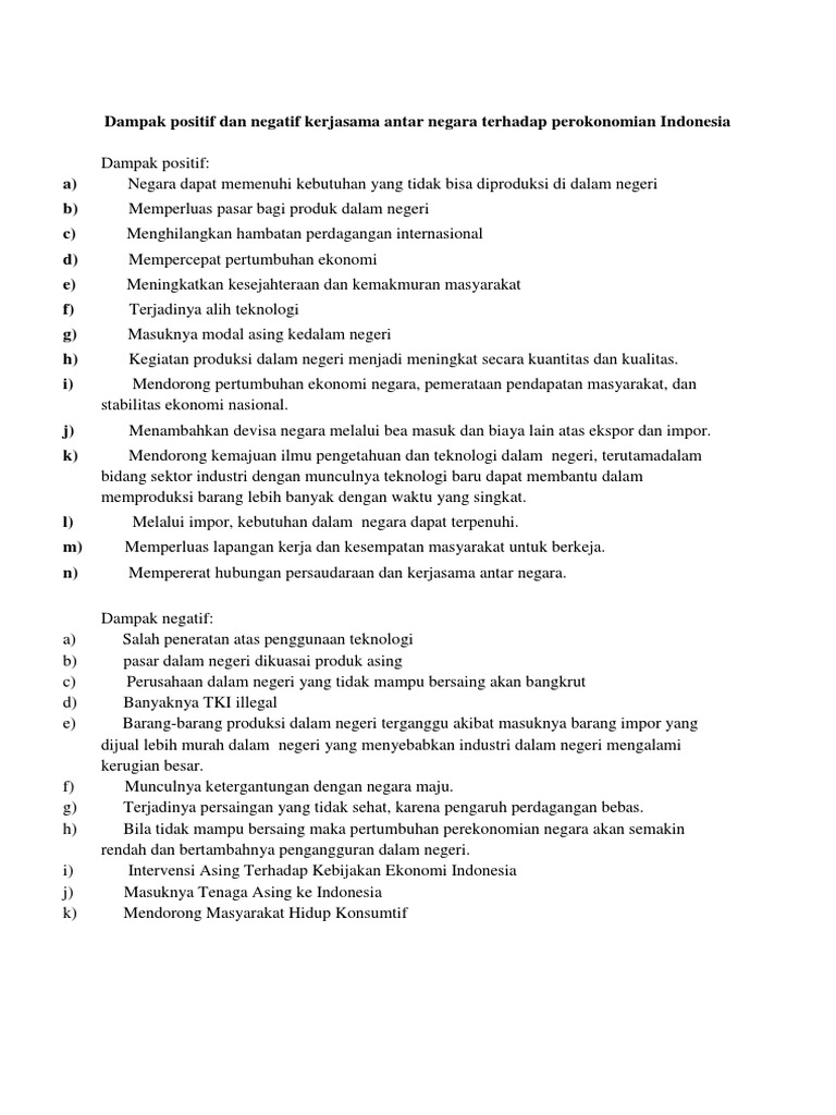 Dampak Positif Dan Negatif Kerjasama Antar Negara Terhadap …
