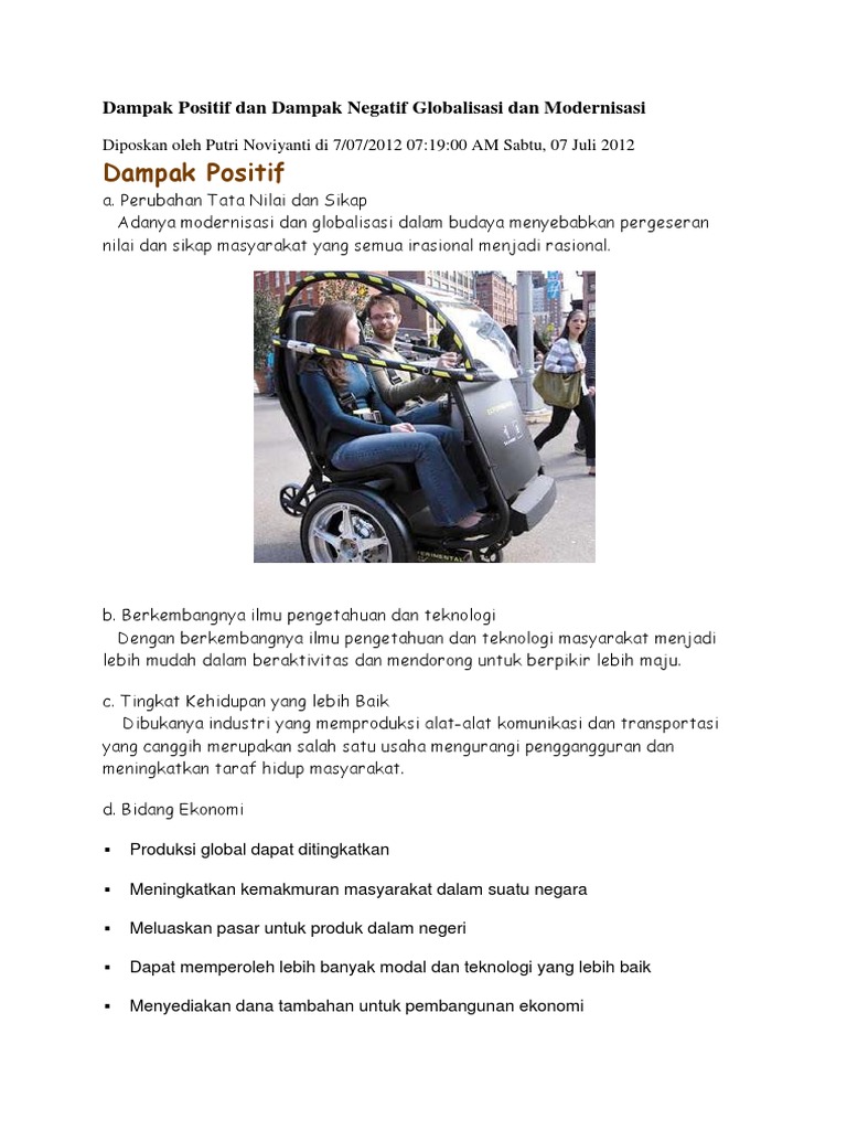 Dampak Positf Negatif Modernisasi dan Globalisasi, Dampak Positif Globlaisasi dan Modernisasi, Dampak Negatif Globalisasi dan Modernisasi,