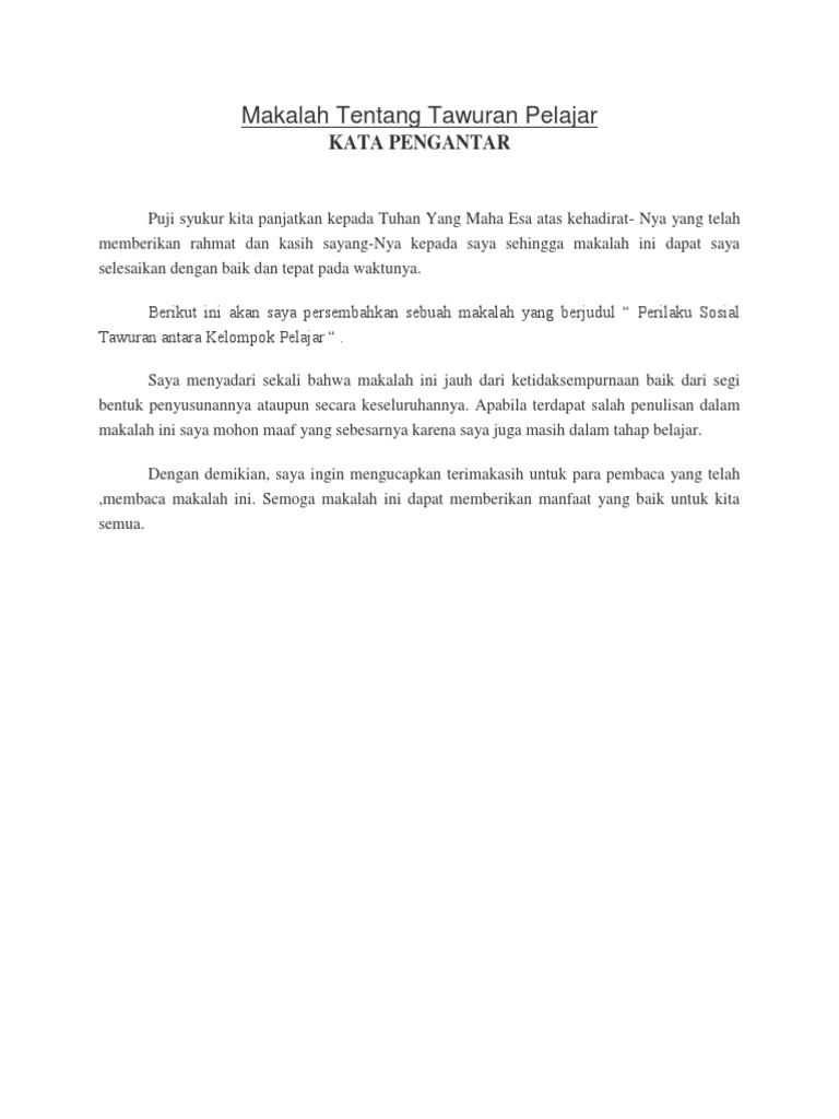 Makalah Tentang Tawuran Pelajar