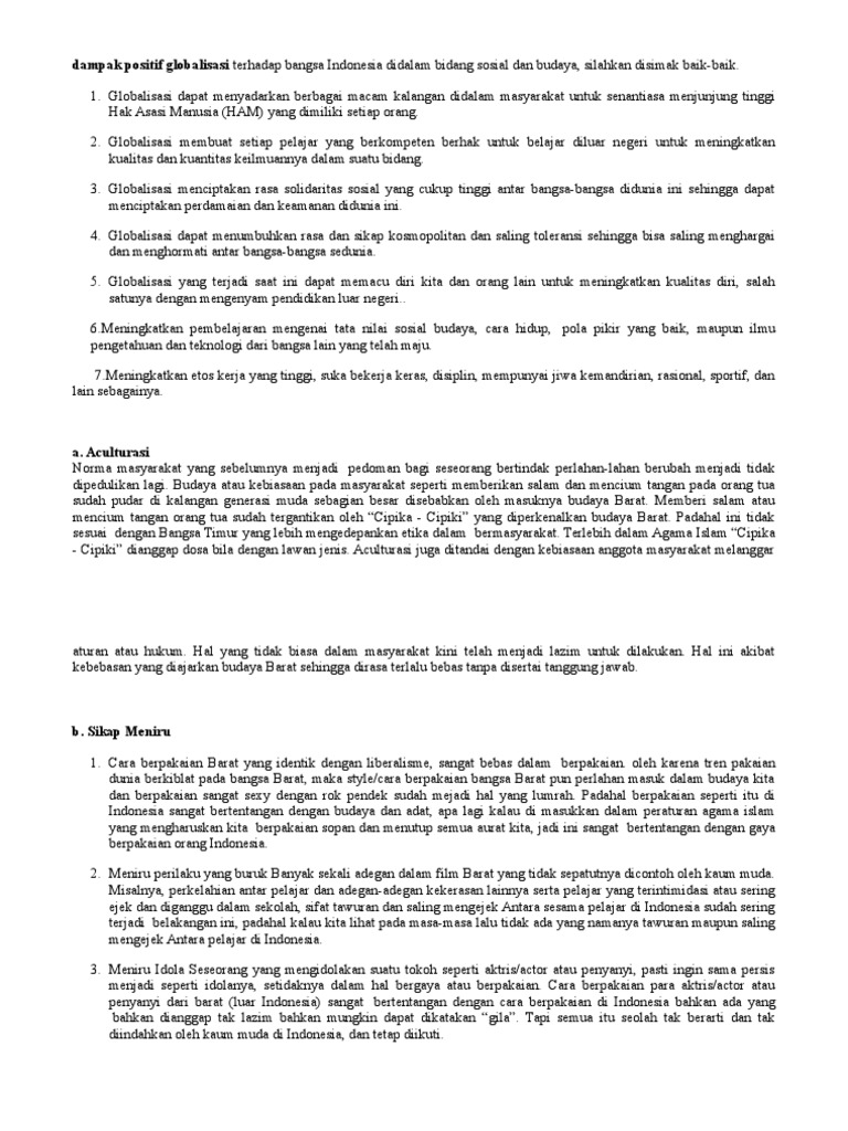DOC) DAMPAK POSITIF DAN NEGATIF GLOBALISASI | Naufal Rafiyanto …