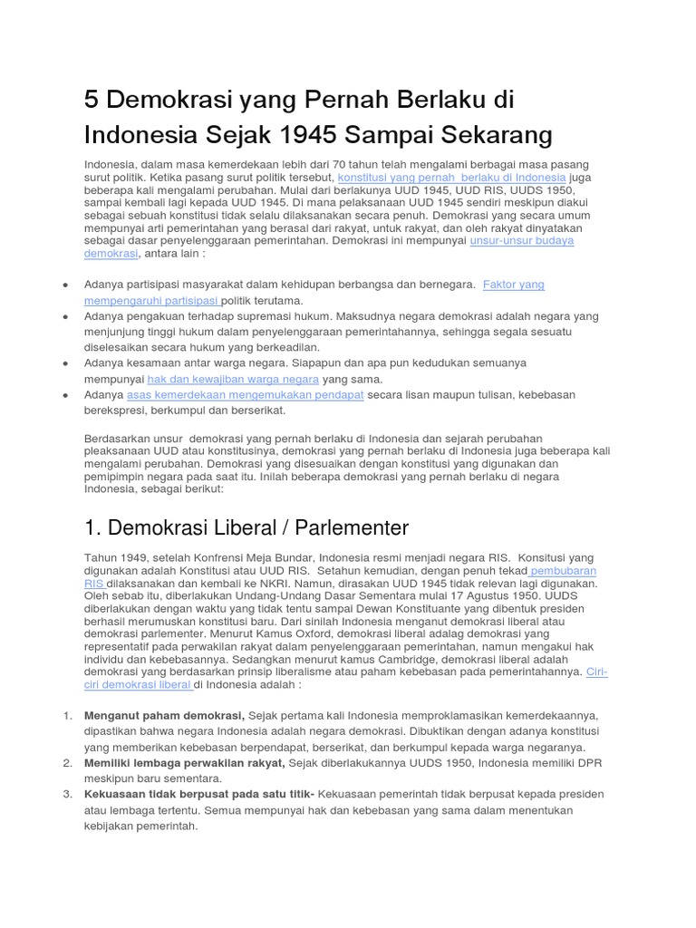 Demokrasi Yang Pernah Berlaku Di Indonesia Sejak 1945 Sampai Sekarang