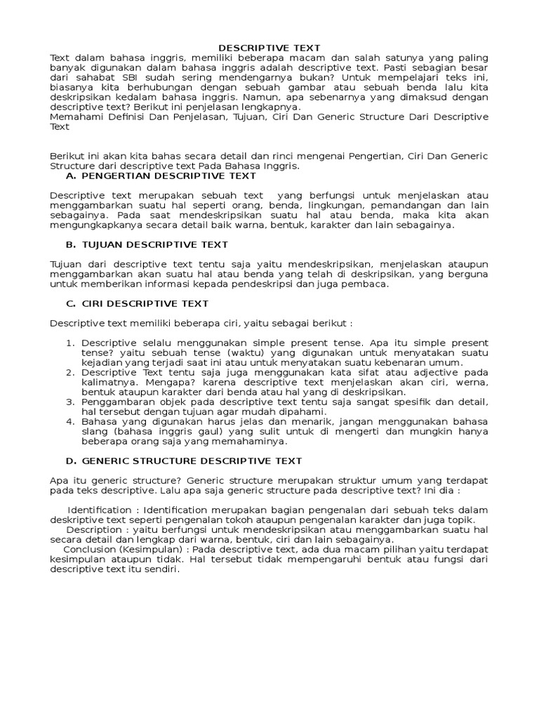 Descriptive Text - FULL MATERI & CONTOH 2021