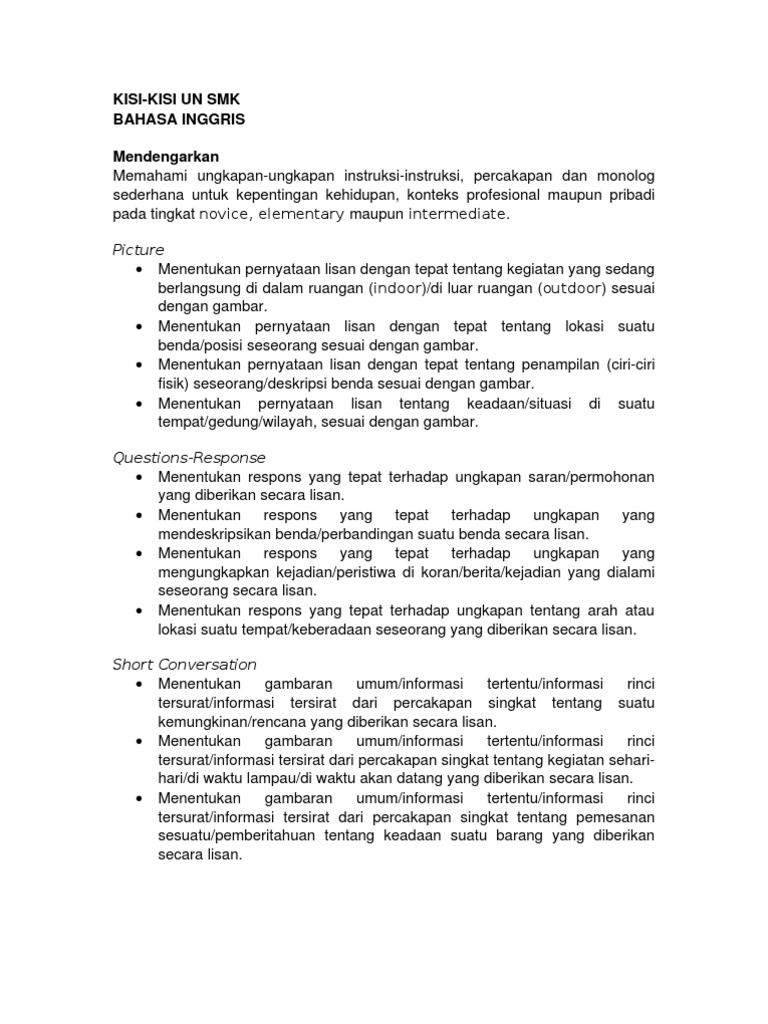 Web viewKISI-KISI SOAL UKK KELAS X BAHASA INGGRIS SMK DINAS …