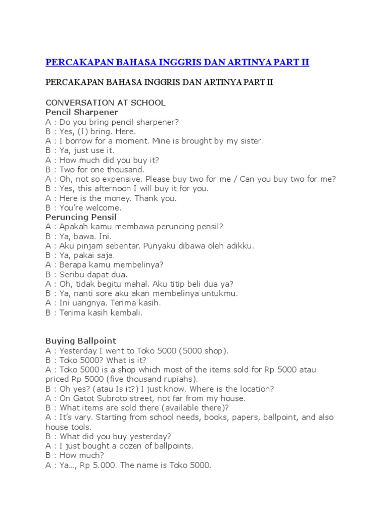 Contoh SOAL Dialog Bahasa Inggris Singkat dan Jawabannya dan Arti …
