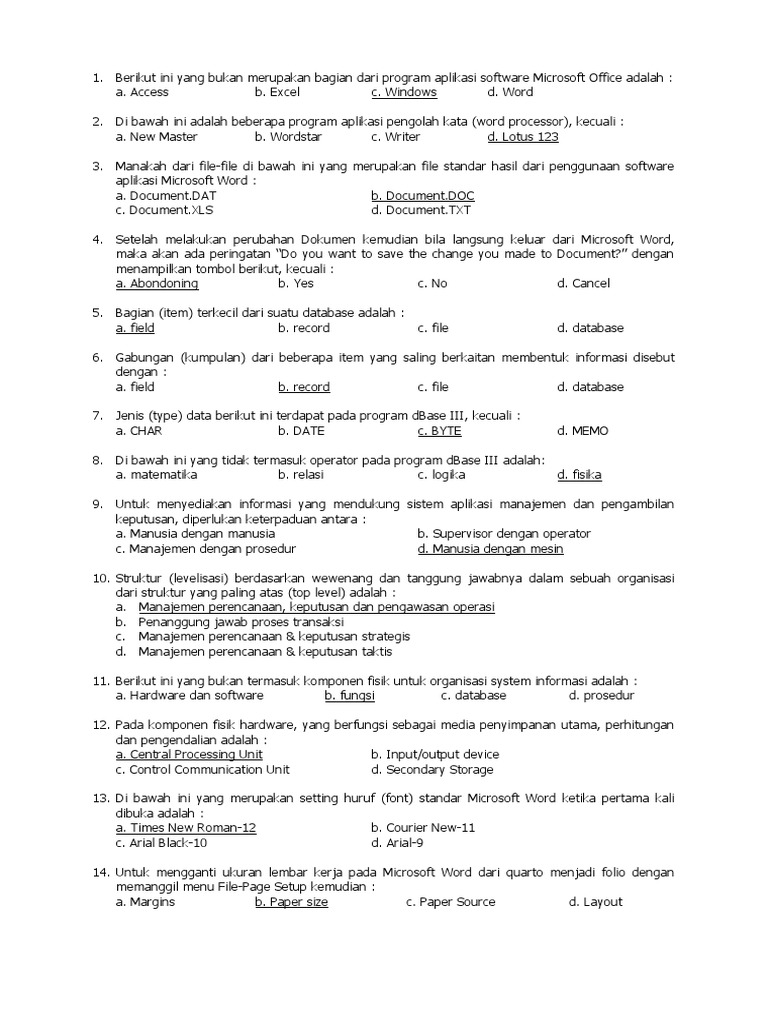 Kunci Jawaban E-learning Pengantar Teknologi Informasi dan …