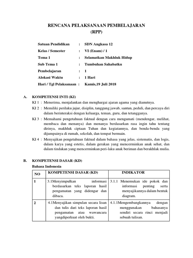 Pembelajaran 1 Tema 1 Subtema 1 Tumbuhan Sahabatku Kelas 6