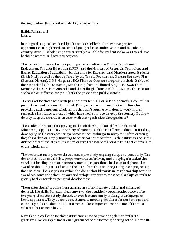 Getting the best ROI in millennials’ higher education | Hafida Fahmiasari - Academia.edu
