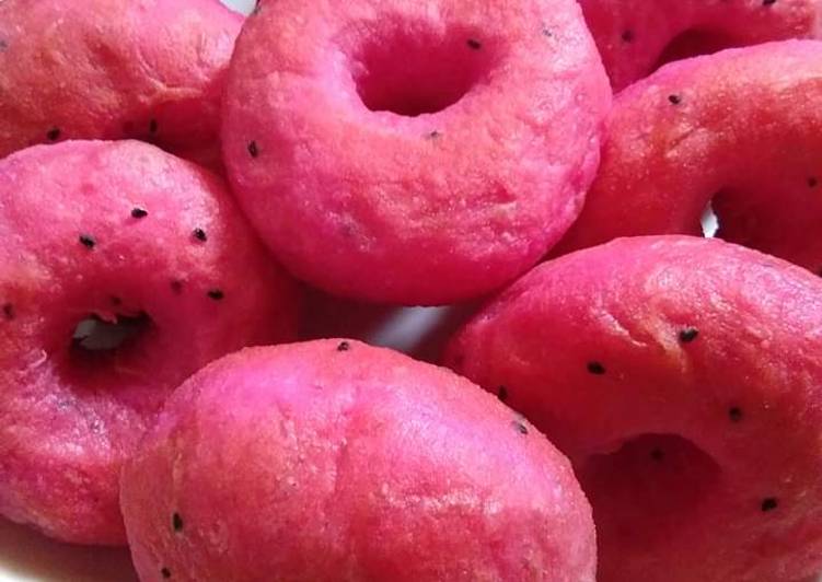 Resep Donat buah naga (eggless) oleh Widynaura - Cookpad