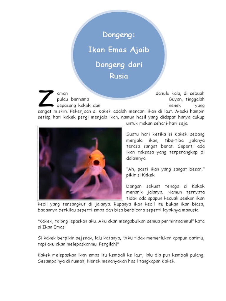 Kesimpulan dongeng ikan mas - Brainly.co.id