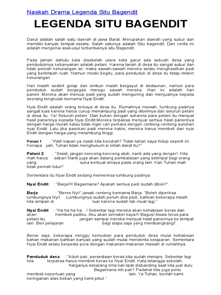 Naskah Drama Situ Bagendit Dalam Bahasa Sunda - Berbagai Naskah
