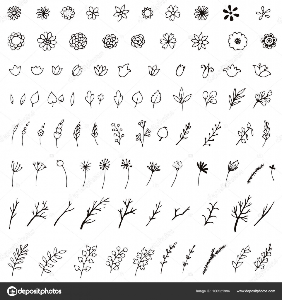 Simple flower doodles | Set of simple doodles of flowers and twigs …