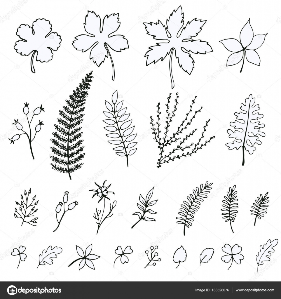 Set of simple hand-drawn doodle leaves and flowers — Stock Vector …