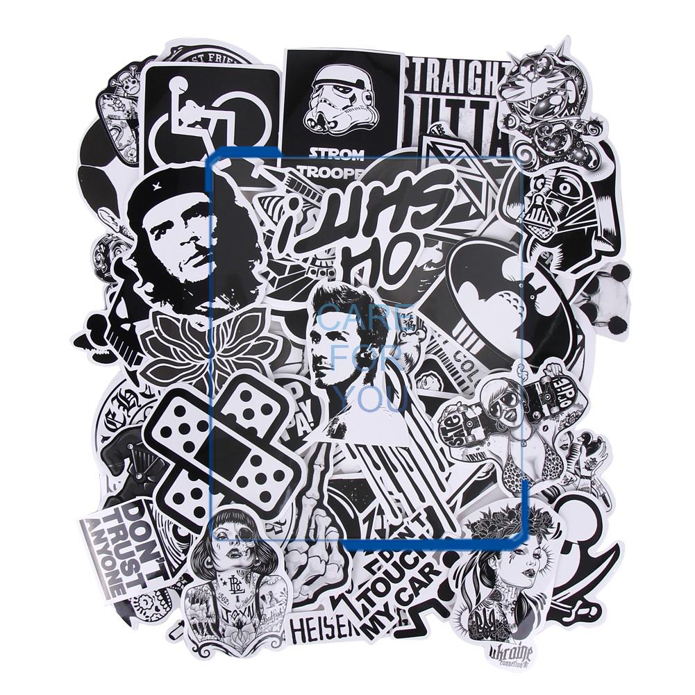 Baru 60 pcs hitam dan putih stiker skateboard grafiti decal mainan laptop sepeda motorcyle stying mobil doodle diy stiker keren|white sticker|stickers whitestickers stickers - AliExpress