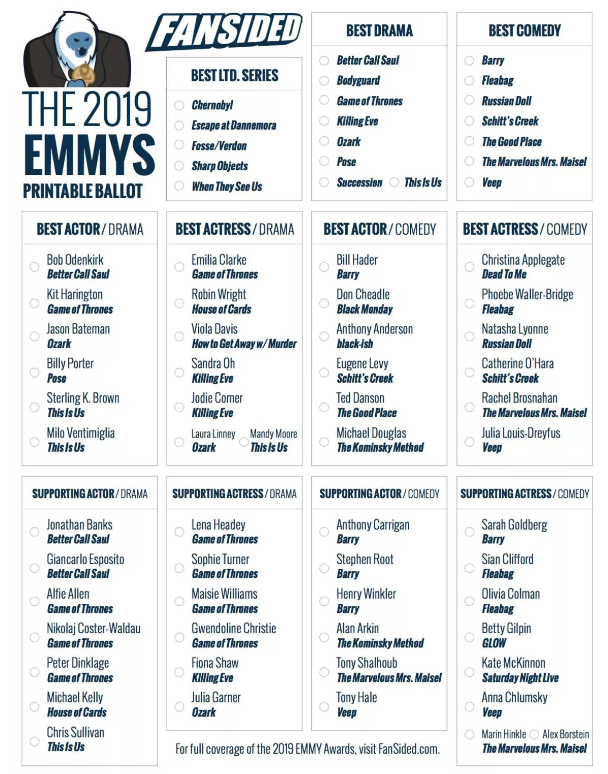 Who are you voting for? Download your ballot for the 2019 Emmys here!