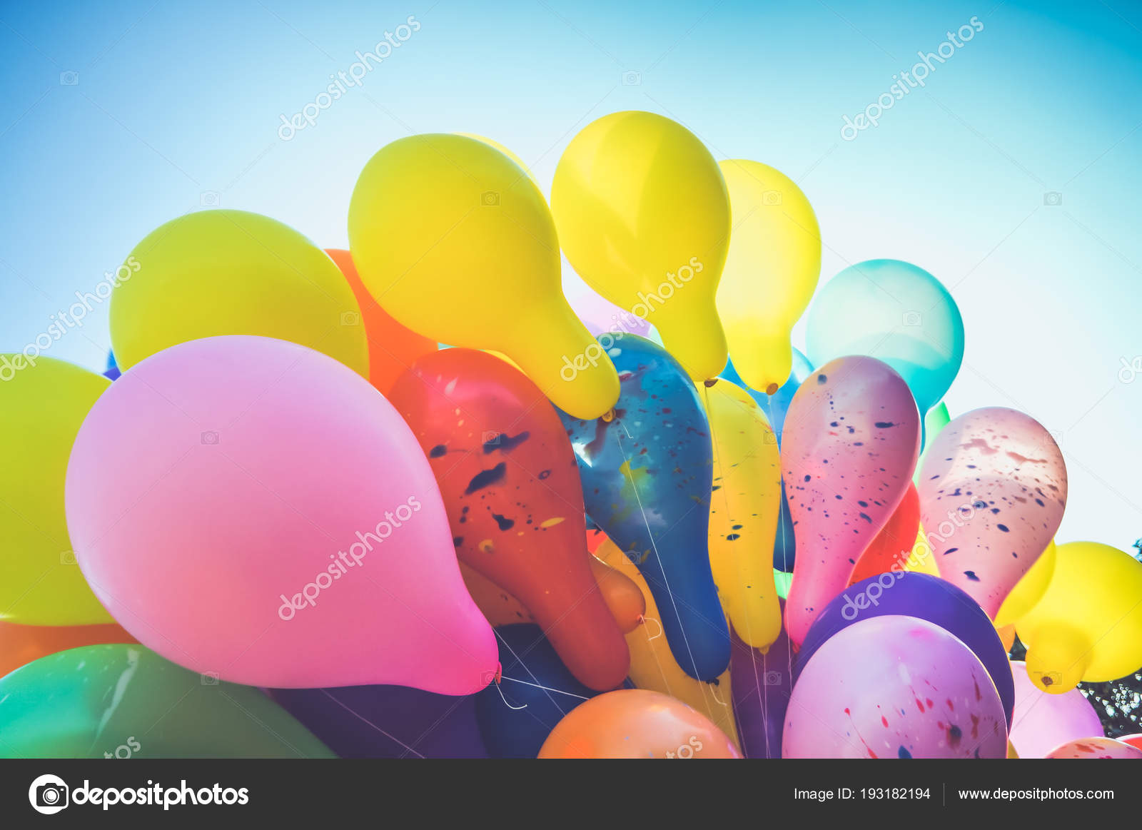 Closeup Multicolor Balloons City Festival Blue Sky Concept Love …
