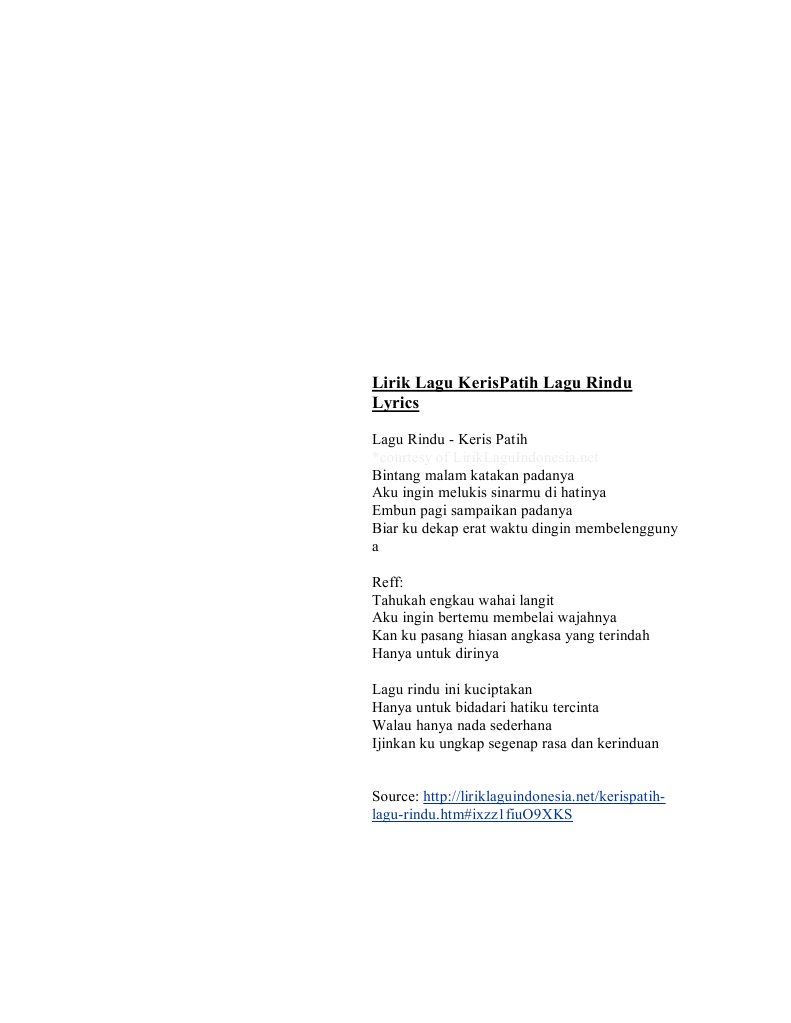 Kerispatih Lagu Rindu Lyrics Lagu Rindu Kerispatih Lyrics Music …