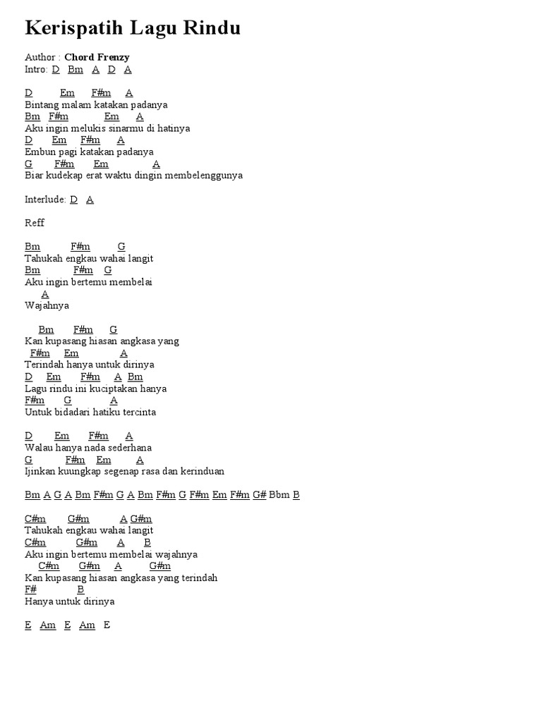Chord Lagu Rindu Kerispatih - nowapaint’s diary