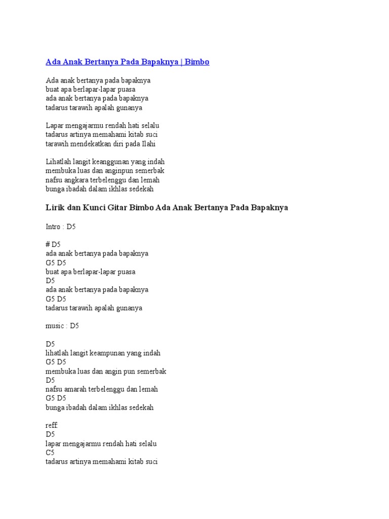 Lirik lagu Ramadhan Bimbo Ada anak bertanya pada bapaknya …