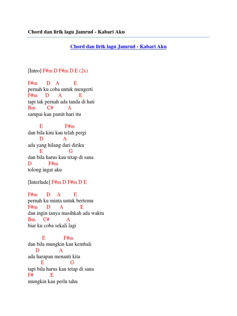 Chord dan lirik lagu jamrud kabari aku by Chord Zila - issuu