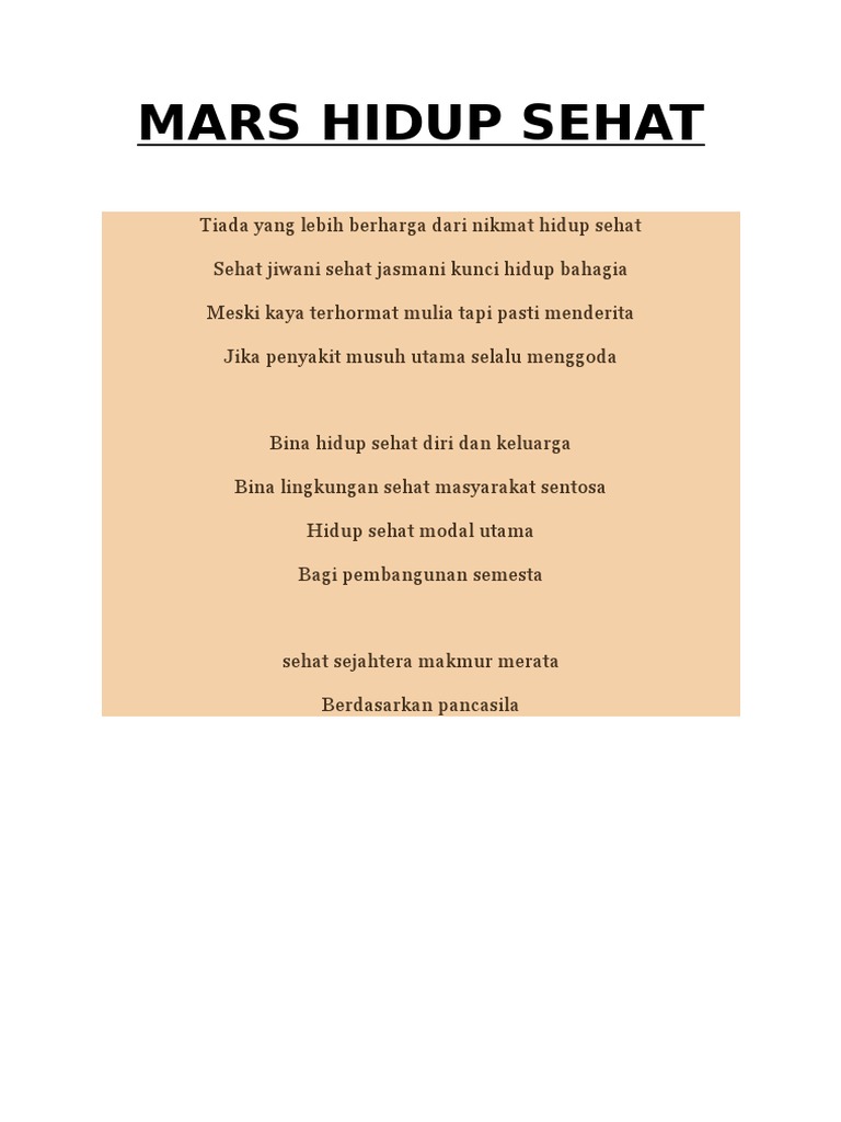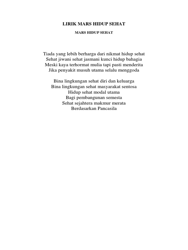 Lagu Mars Hidup Sehat Lirik, Not Lagu dan Audio MP3 - DriveDocx