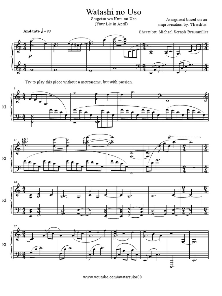 Shigatsu wa Kimi no Uso OST Kimi ga Iru Piano Transcription Sheet …