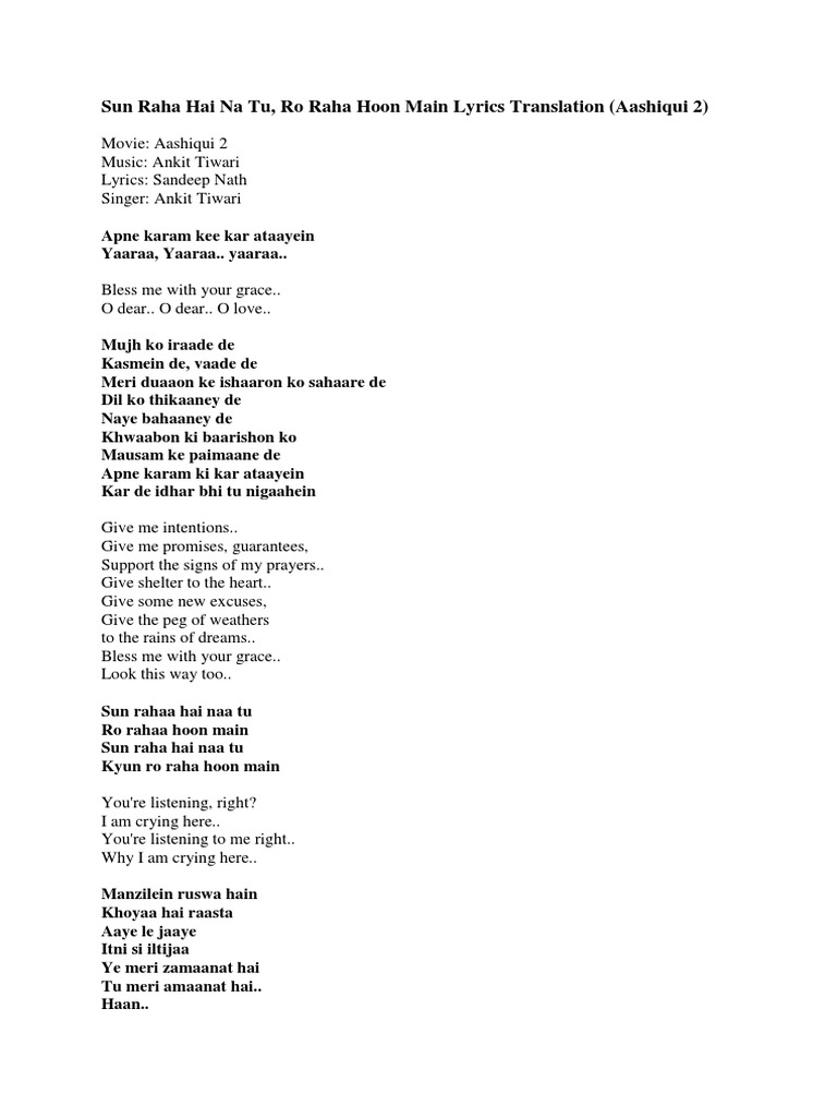 SUN RAHA HAI NA TU LYRICS - Aashiqui 2