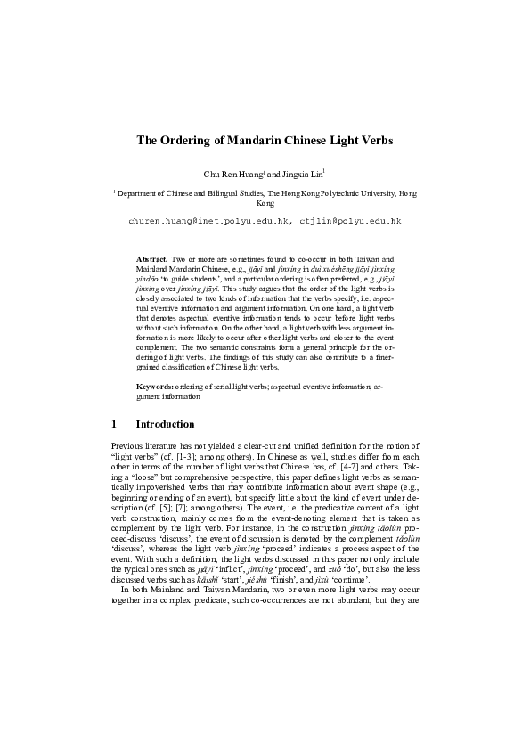 PDF) The Ordering of Mandarin Chinese Light Verbs | Jingxia Lin …