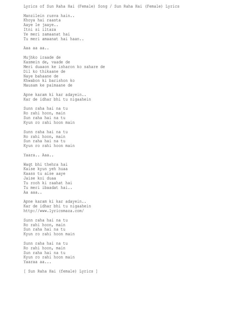 sun raha hai na tu female lyrics mp3 song download Archives - science update:- Entertainment News | Daily News | Latest News