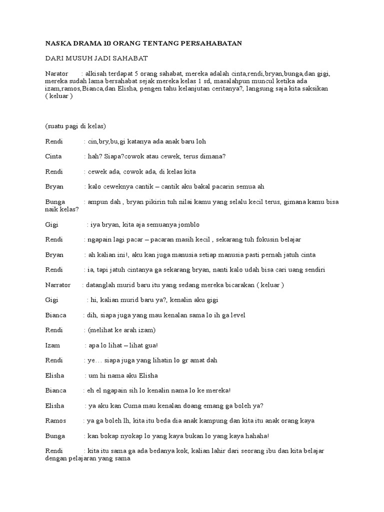 contoh naskah drama 7 orang tentang persahabatan - Contoh Naskah …