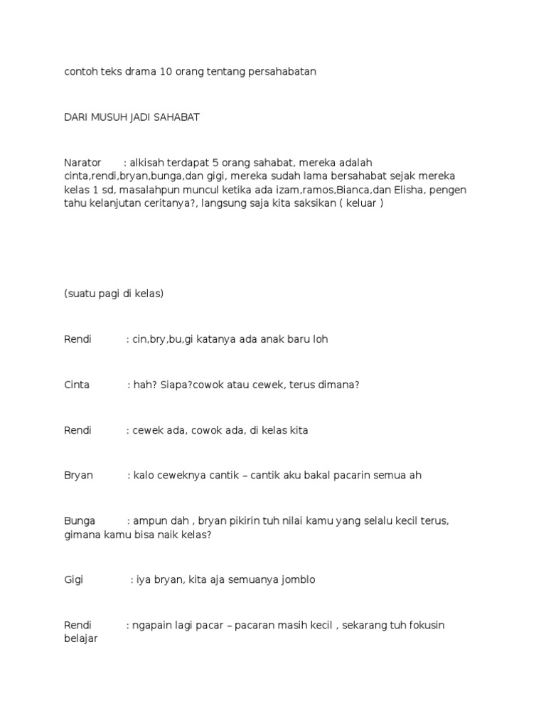 Contoh Naskah Drama Untuk 10 Orang Tentang Persahabatan - Contoh Dyn
