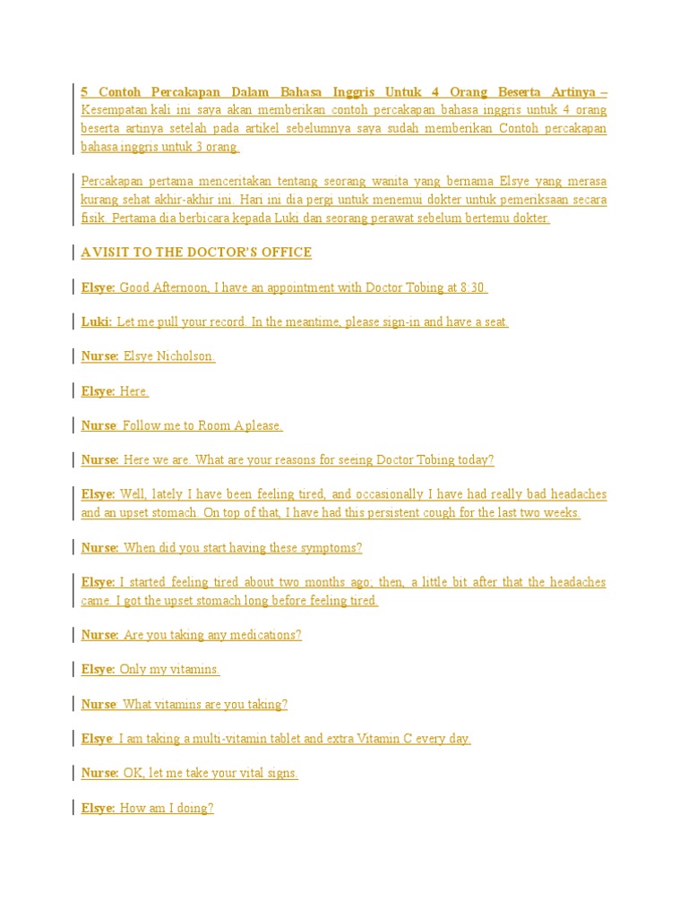 Dialog Bahasa Inggris 4 Orang Tentang Periksa ke Dokter - Paja Tapuih