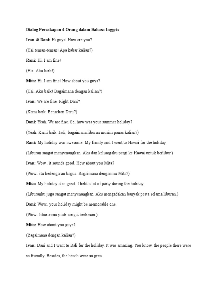 Naskah Dialog b.inggris 4 Orang + Terjemahan