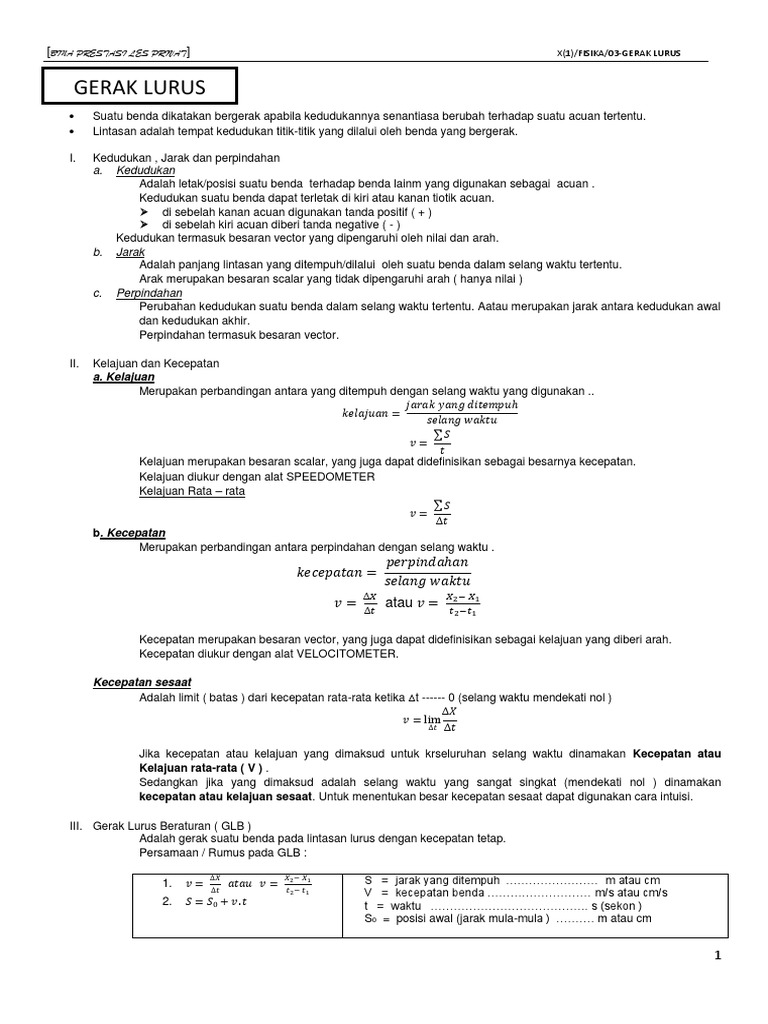 Modul, Rumus, & Soal Gerak Lurus Beraturan | Wardaya College