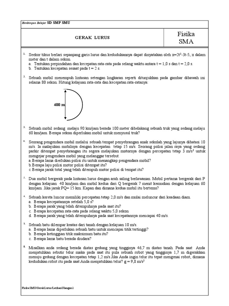 Latihan Soal Gerak Lurus Beraturan - Latihan Soal Gerak Lurus …