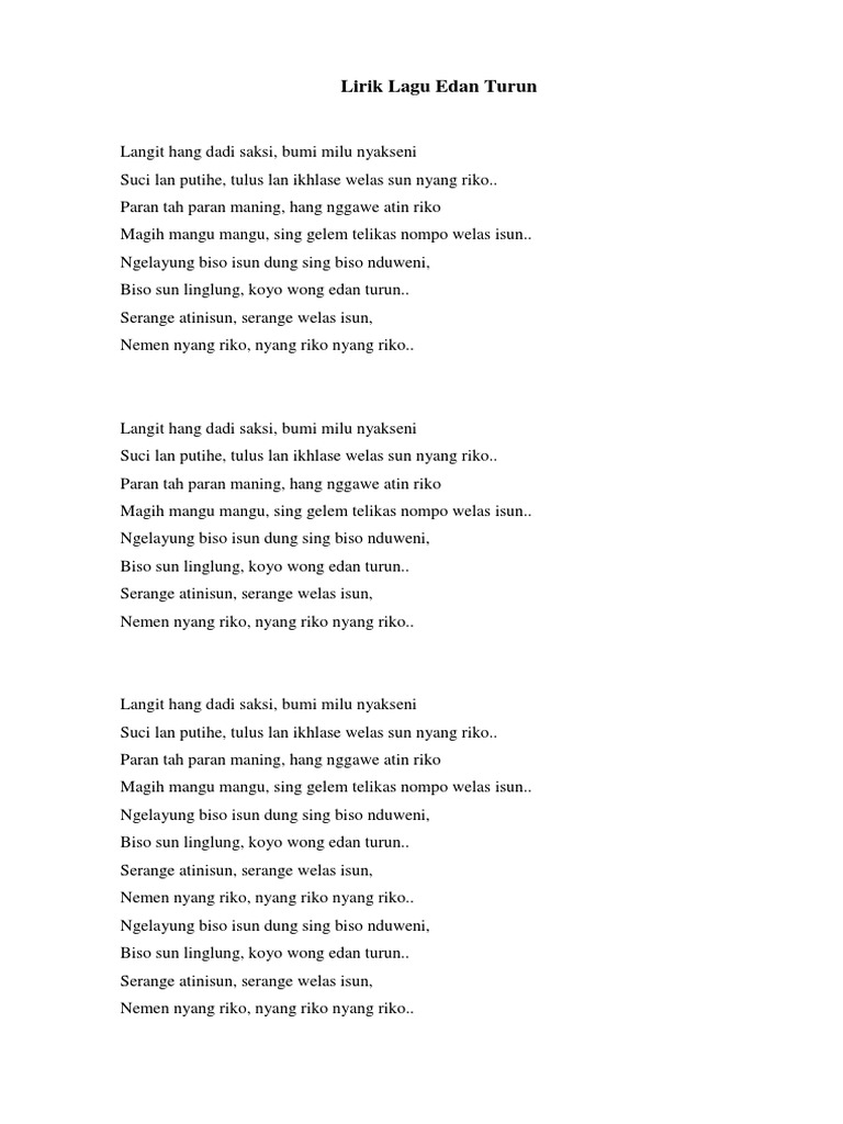 Edan Turun Lirik Dan Artinya
