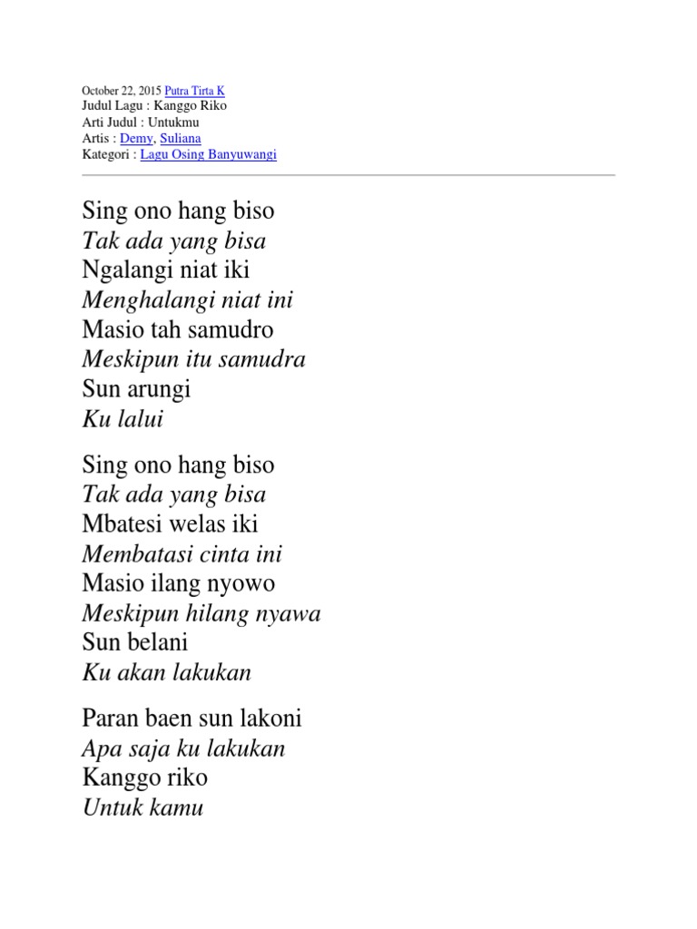 Lirik Lagu Dangdut Banyuwangi Edan Turun Terjemahan - IMANIAWAN.ID