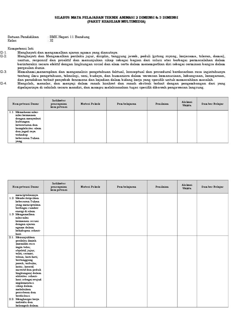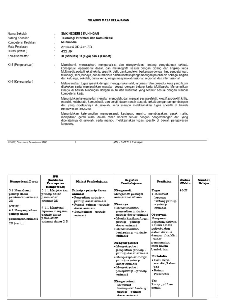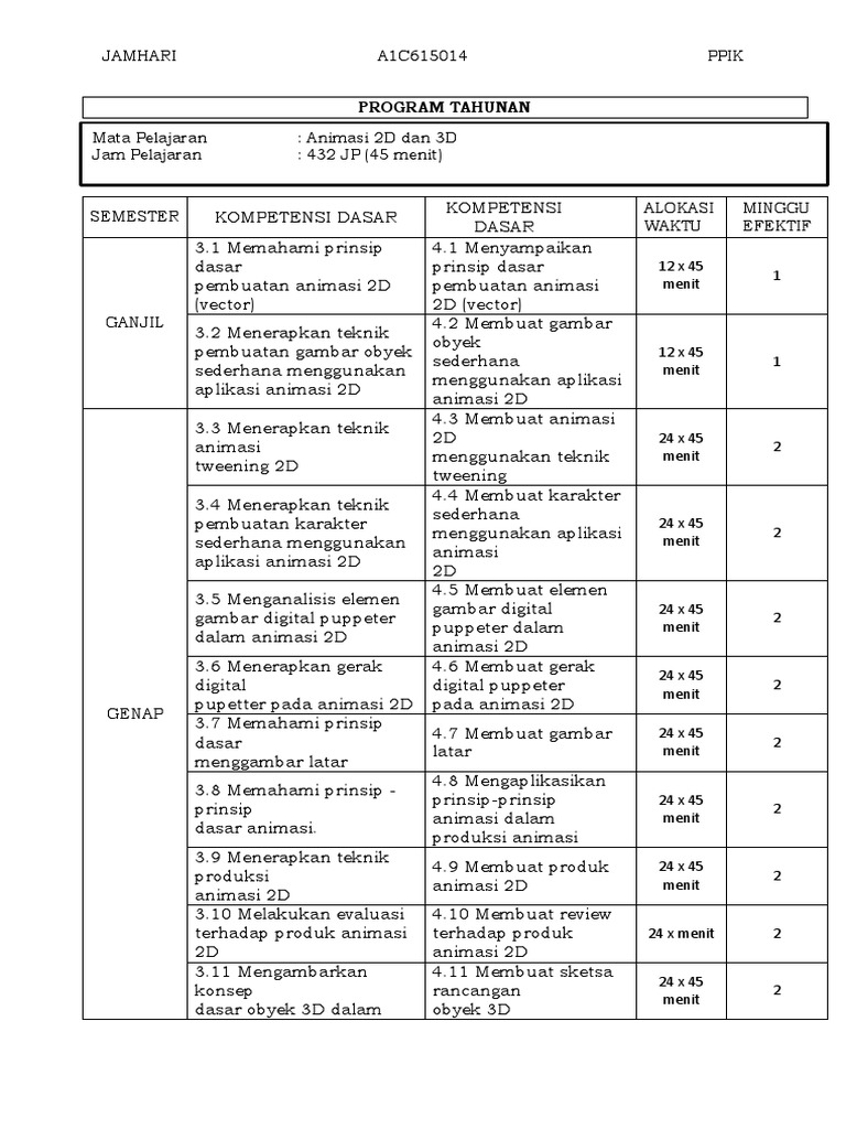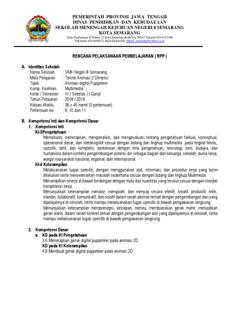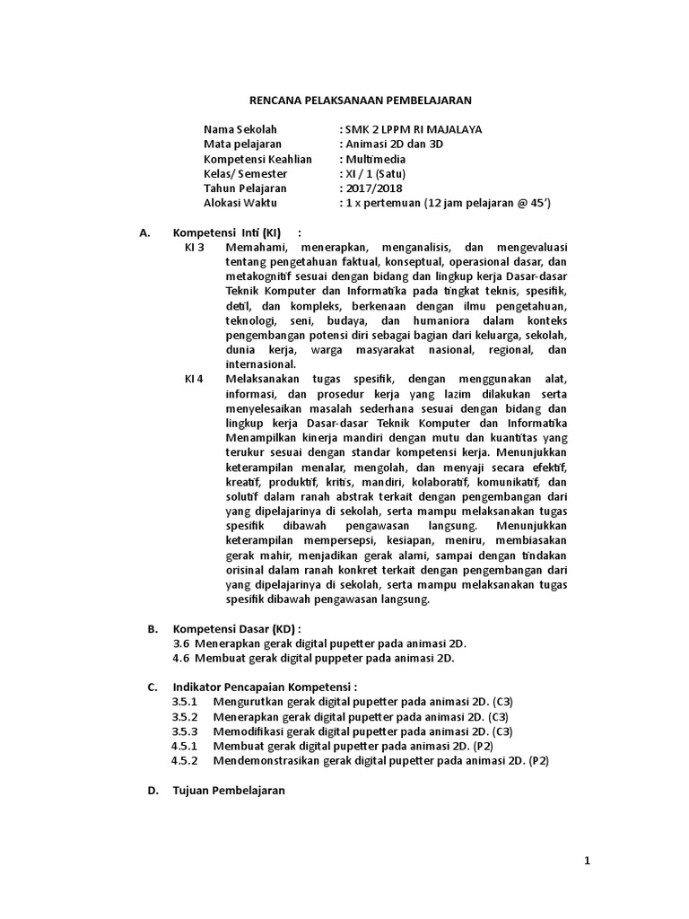 Download Contoh RPP 1 Lembar - Multimedia SMK Kelas XI - Animasi …