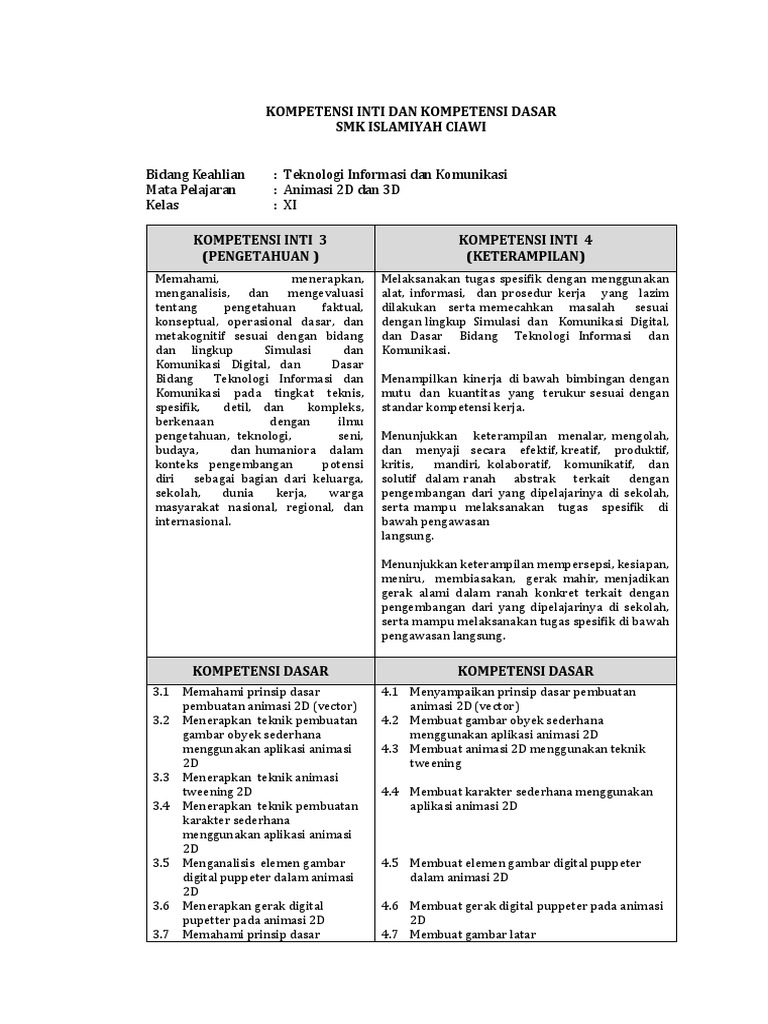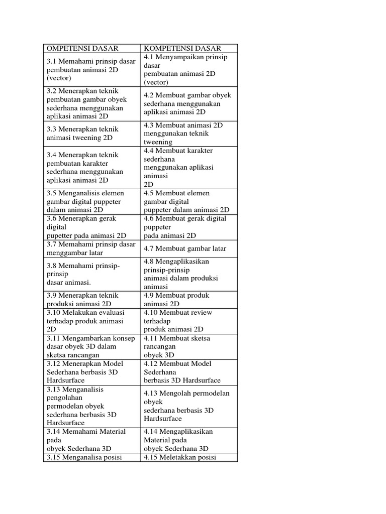 KI-KD Animasi 2D dan 3D