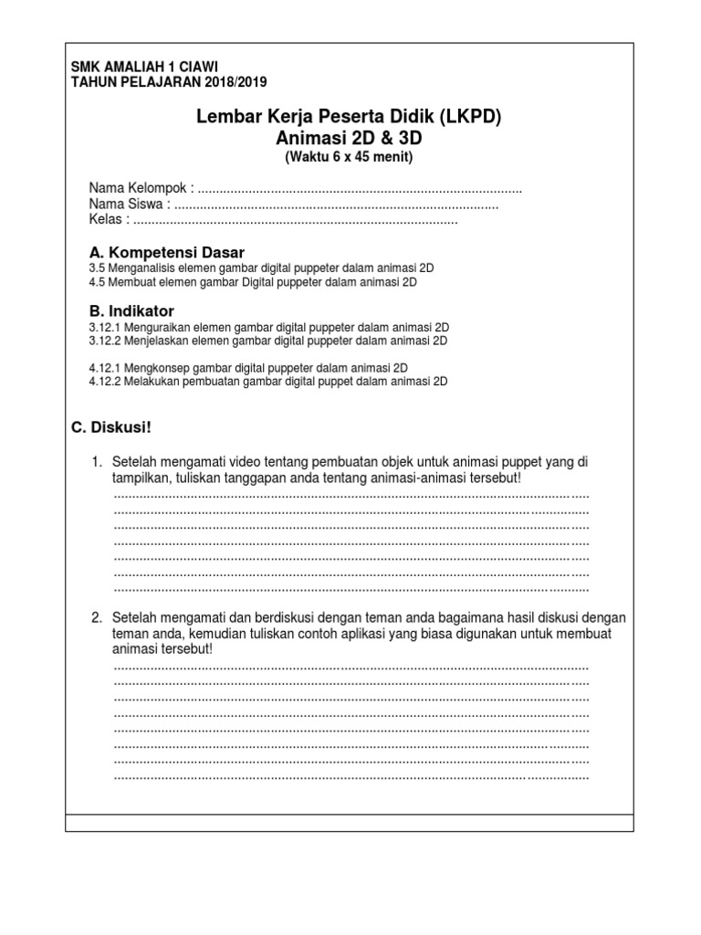 Lembar Kerja Peserta Didik (LKPD) Animasi 2D & 3D: A. Kompetensi Dasar