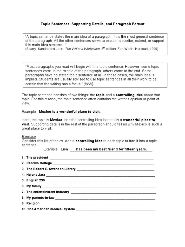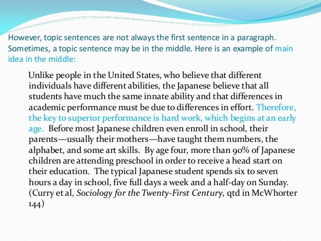Example Of Paragraph With Topic Sentence And Main Idea
